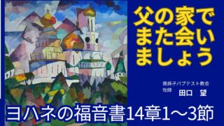 説教 ヨハネ14章1~3節 父の家でまた会いましょう 今日は昇天者記念礼拝です。私たちは愛する人を思い起こし、悲しみと感謝の中で神の前に立ちます。別れはいつも胸に痛みを残しますが、イエス・キリストは弟子たちにこう語られました。「あなたがたは心を騒がせてはなりません。わたしの父の家には住まいがたくさんあります。」――これは、「別れは終わりではない」という慰めの約束です。 2025.11.02 説教